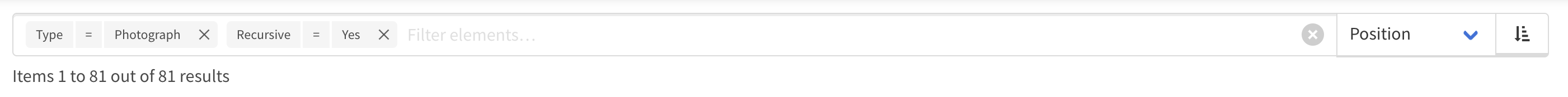 - avec la barre de filtrage, afficher type=photograph recursive=yes